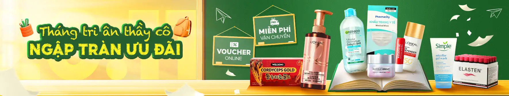 Pharmacity cam kết cung cấp sản phẩm chính hãng, đa dạng từ thuốc cho các nhóm bệnh: Tiểu Đường, Huyết Áp, Mỡ Máu, Tiêu Hóa, Hô Hấp,… đến thực phẩm chức năng, sản phẩm chăm sóc sức khỏe, sắc đẹp, thiết bị y tế thuộc các thương hiệu hàng đầu thế giới như: Abbott, GSK, Sanofi, Astrazeneca, Pfizer, Mega Lifesciences, Goodlife, L’oreal, Durex,… và các thương hiệu uy tín tại Việt Nam như Dược Hậu Giang, Nam Hà,… Bên cạnh đó, chúng tôi luôn chú trọng bảo quản sản phẩm trong điều kiện tốt nhất, đảm bảo chất lượng đến tay người tiêu dùng.