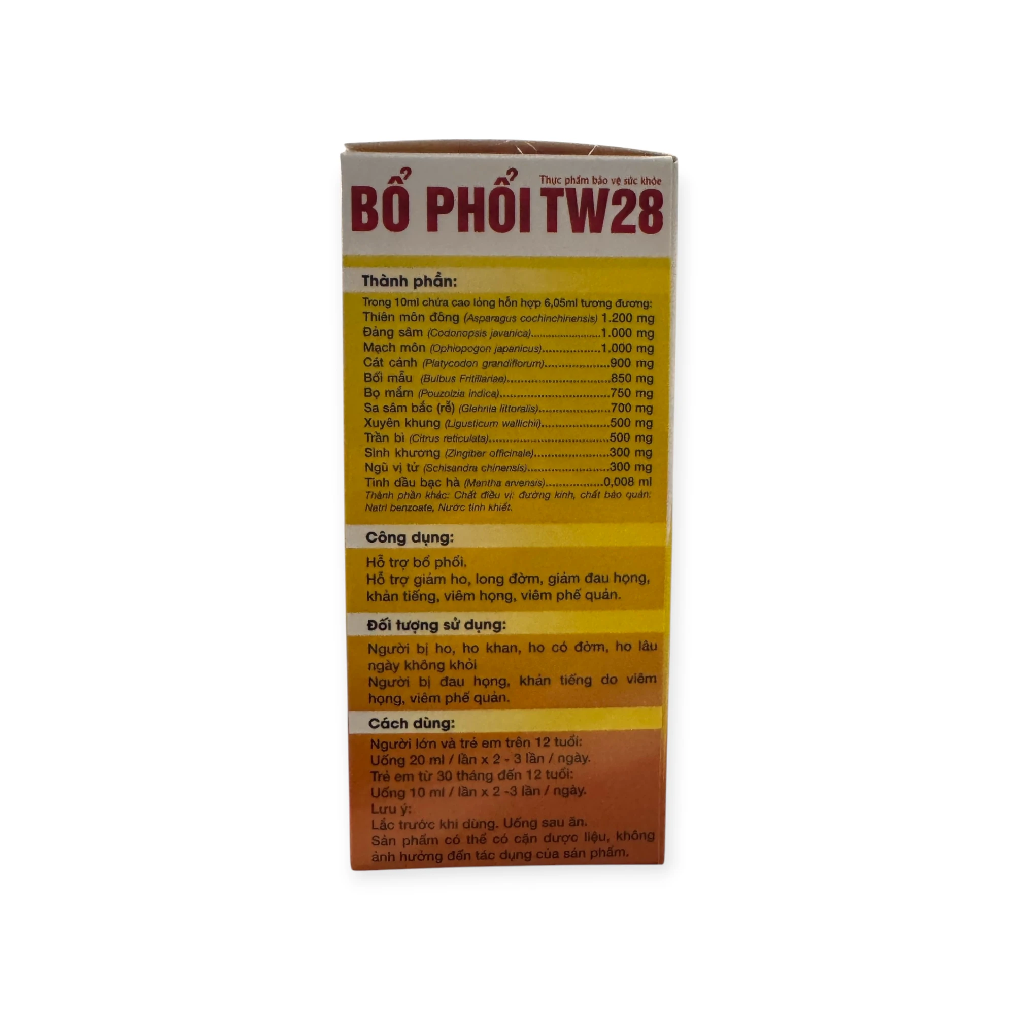 Bổ Phổi TW28 (trong 10ml cao lỏng hỗn hợp 6,05ml tương đương)
