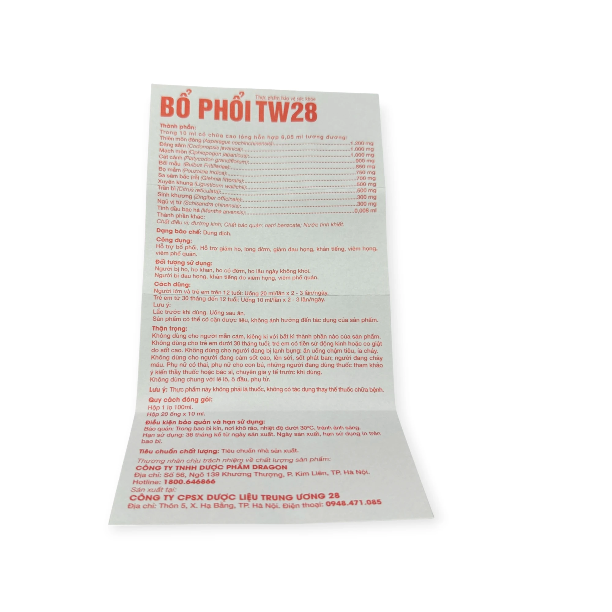 Dung dịch uống Bổ Phổi TW28 Dragon Pharma là gì?
