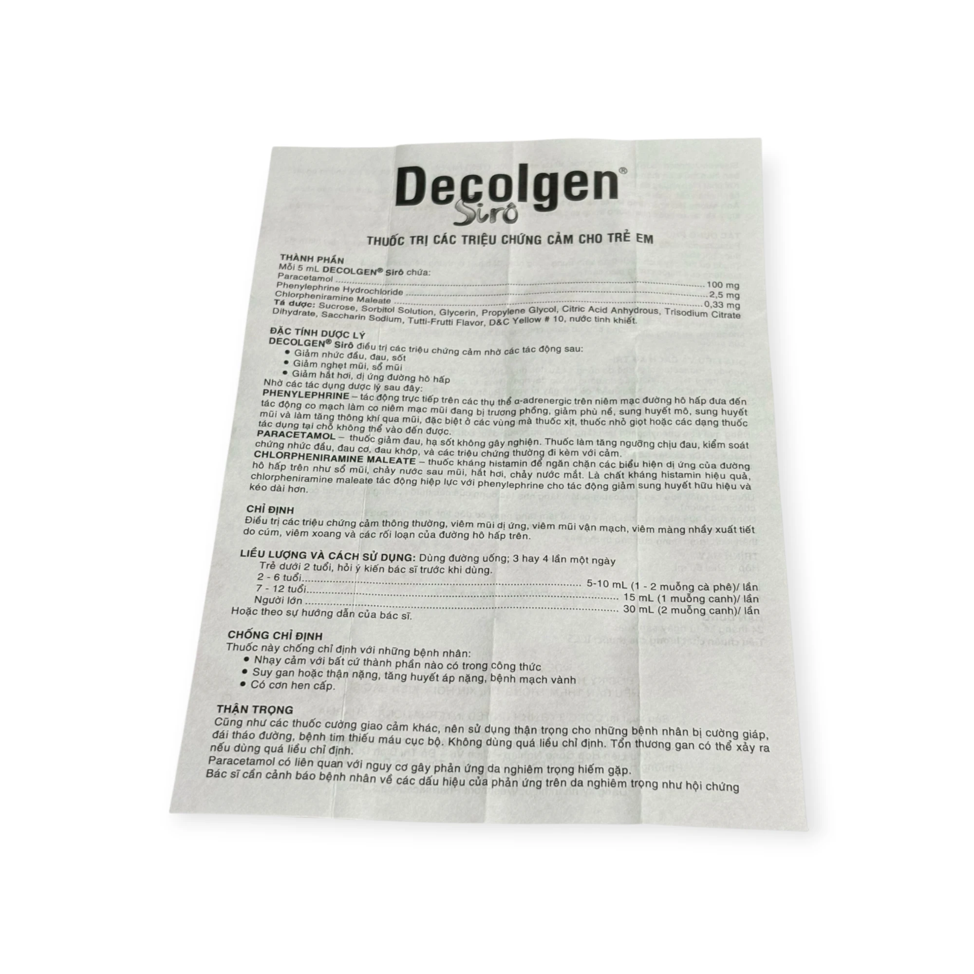 | Phenylephrine HCl | 2,5 mg | Hoạt chất – chống sung huyết mũi |