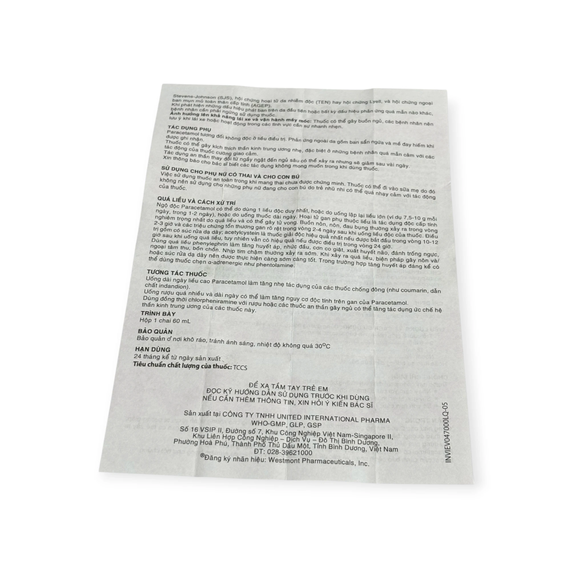 - Không dùng đồng thời với các thuốc chống cảm cúm, giảm đau, hạ sốt khác có chứa paracetamol.