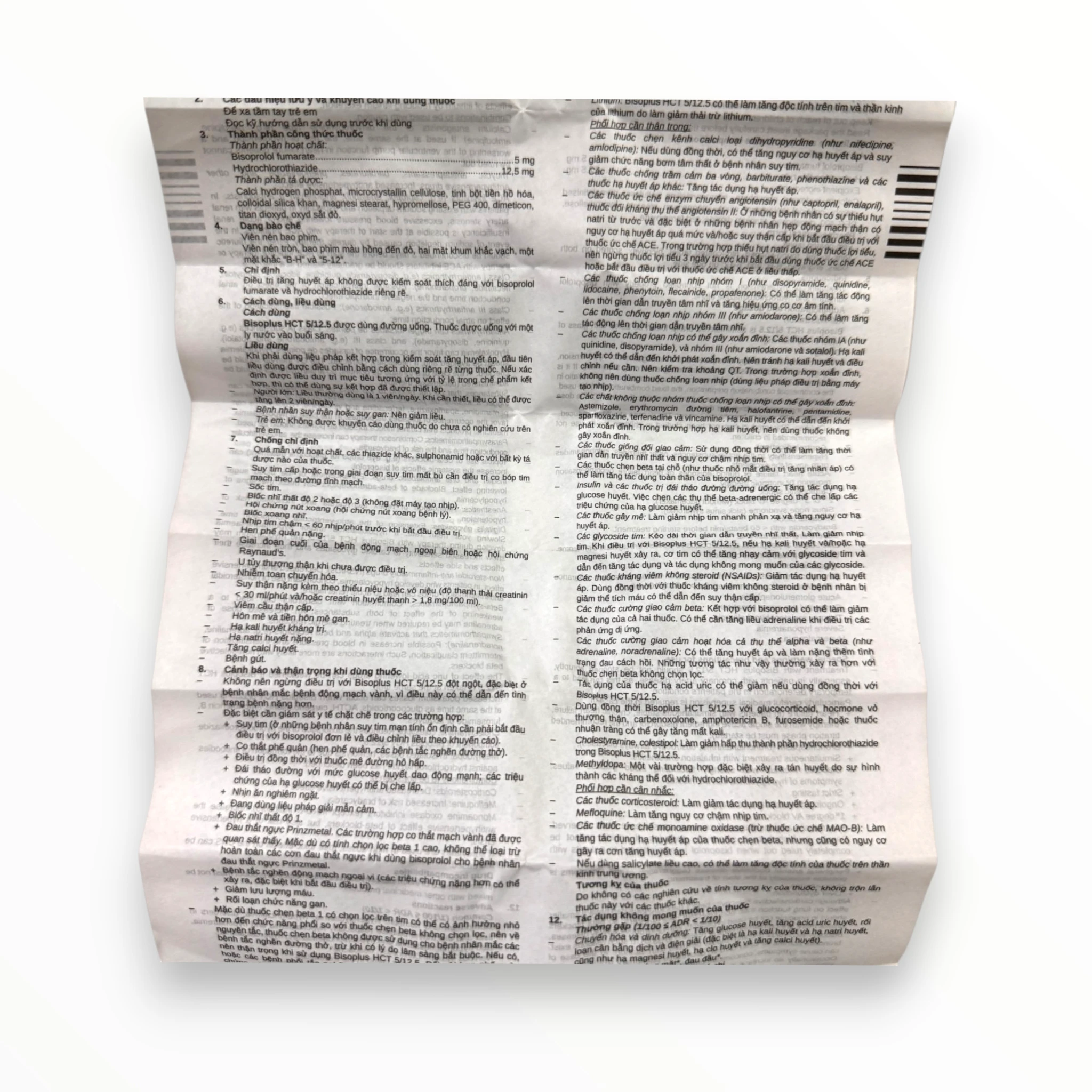 - Lithium: Bisoplus HCT 5/12.5 có thể làm tăng độc tính trên tim và thần kinh của lithium do làm giảm thải trừ lithium.