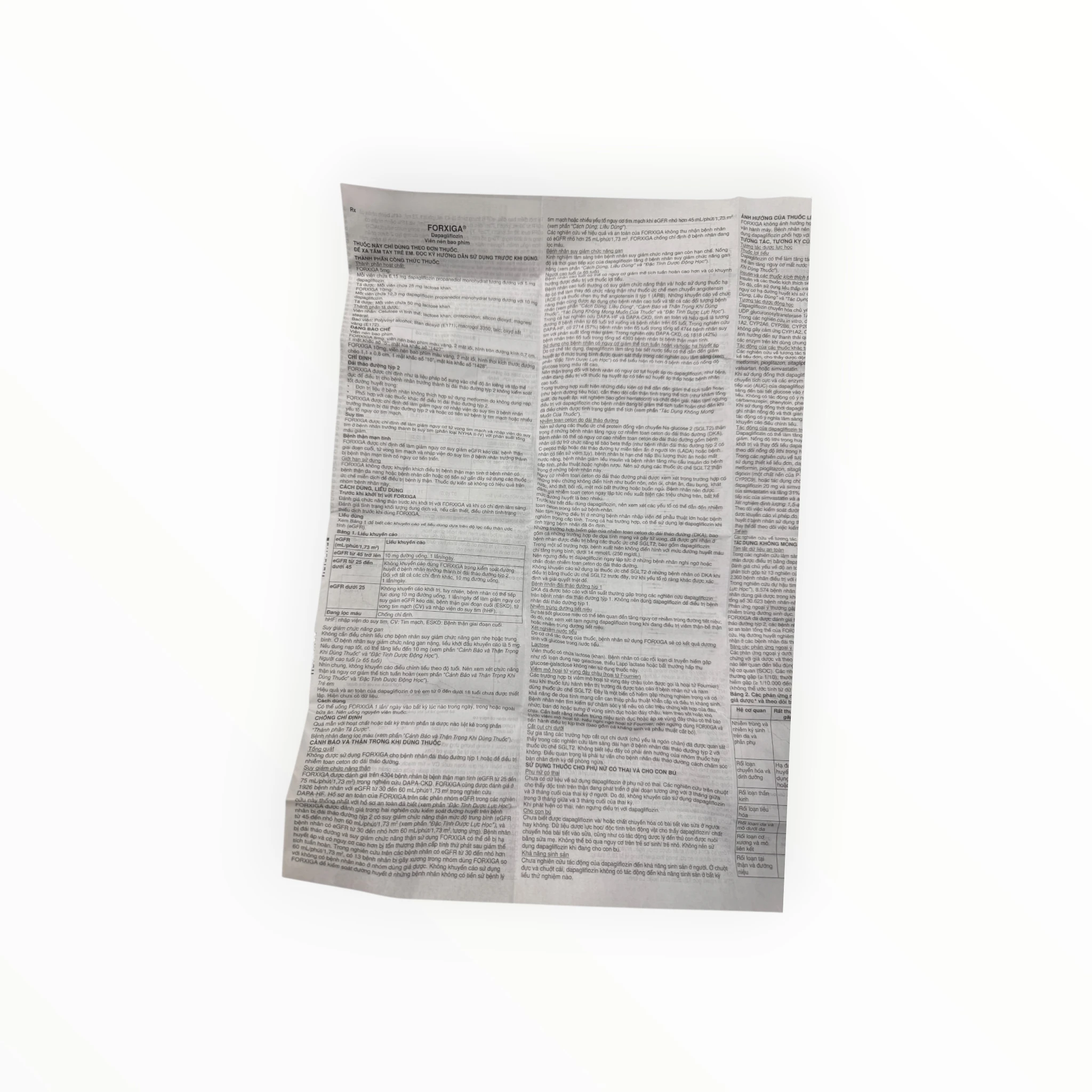 | Cellulose vi tinh thể, crospovidon, silicon dioxyd, magnesi stearat, Polyvinyl alcohol, titan dioxyd (E171), macrogol 3350, talc, bột sắt, FORXIGA, 2 mặt lồi, hình tròn đường kính 0, 7 cm, hình thoi kích thước đường kính 1, 1 x 0, 8 cm, 1 mặt khắc số “10”, mặt kia khắc số “1428” | vừa đủ | Tá dược |