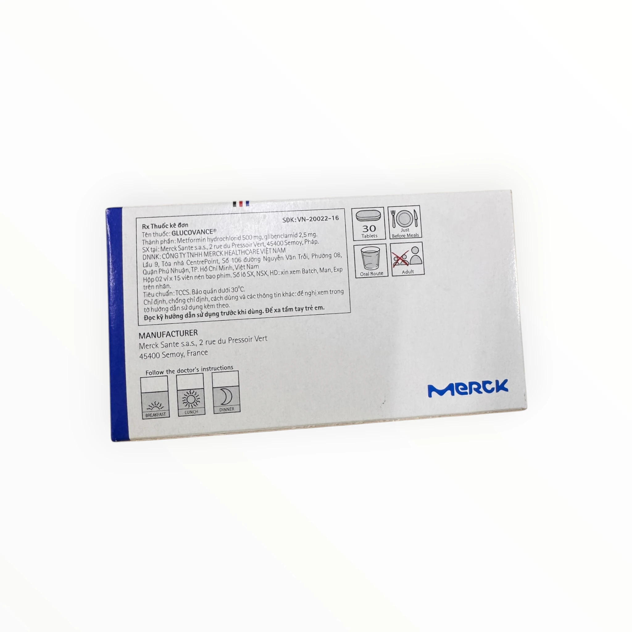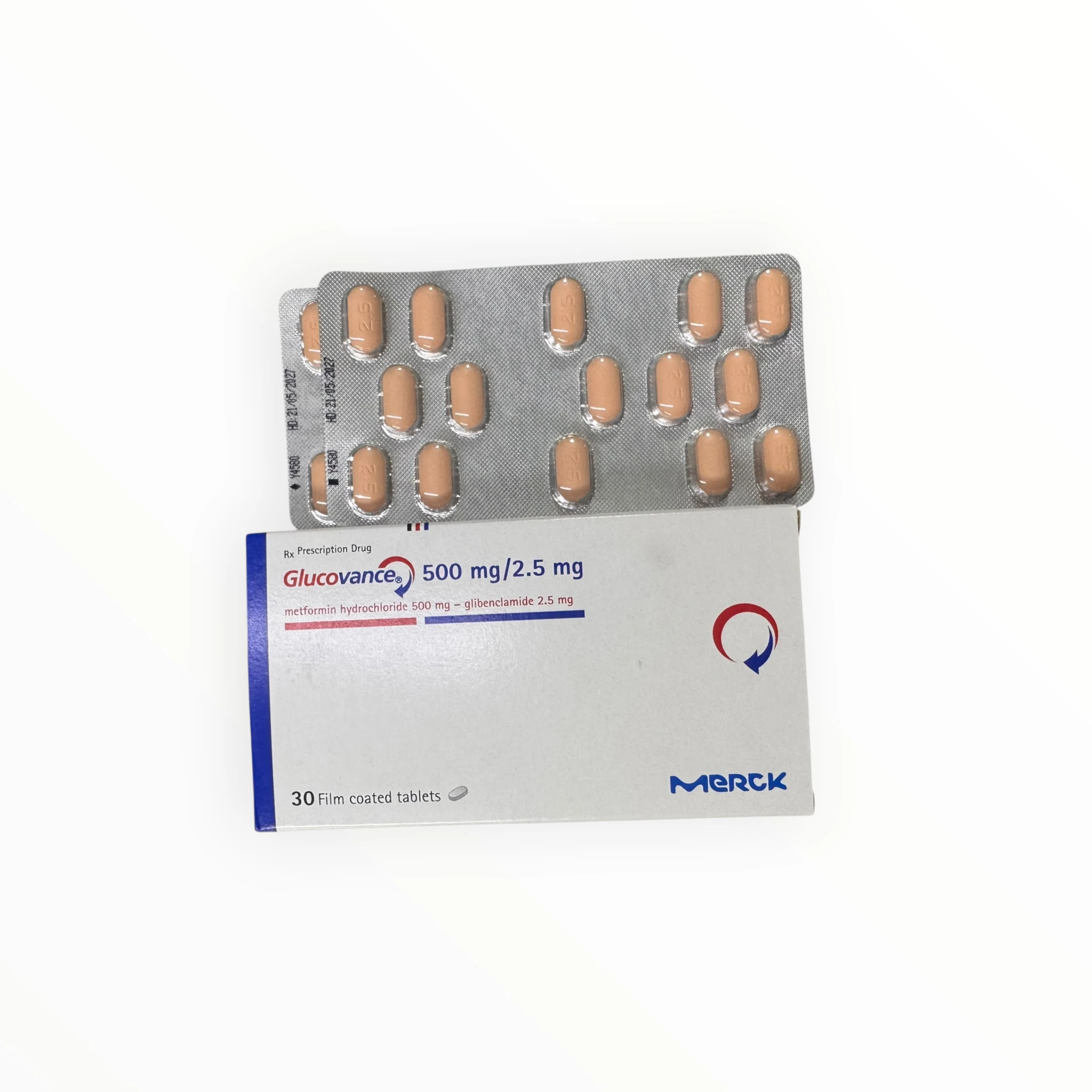 Glucovance 500mg/2.5mg Metformin HCl 500mg + Glibenclamide 2,5mg Viên nén bao phim