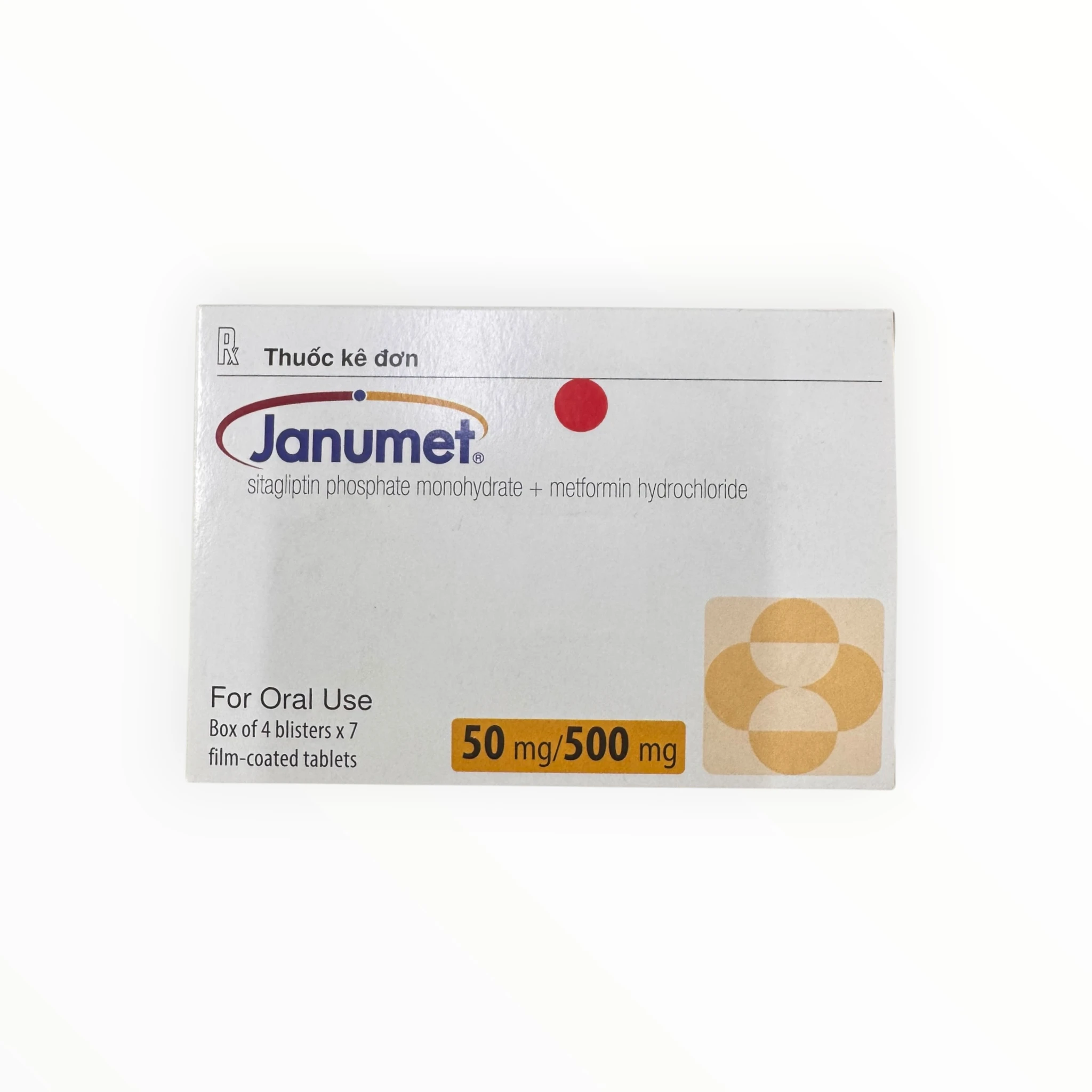 Janumet 50mg/500mg Sitagliptin 50mg + Metformin HCl 500mg Viên nén bao phim