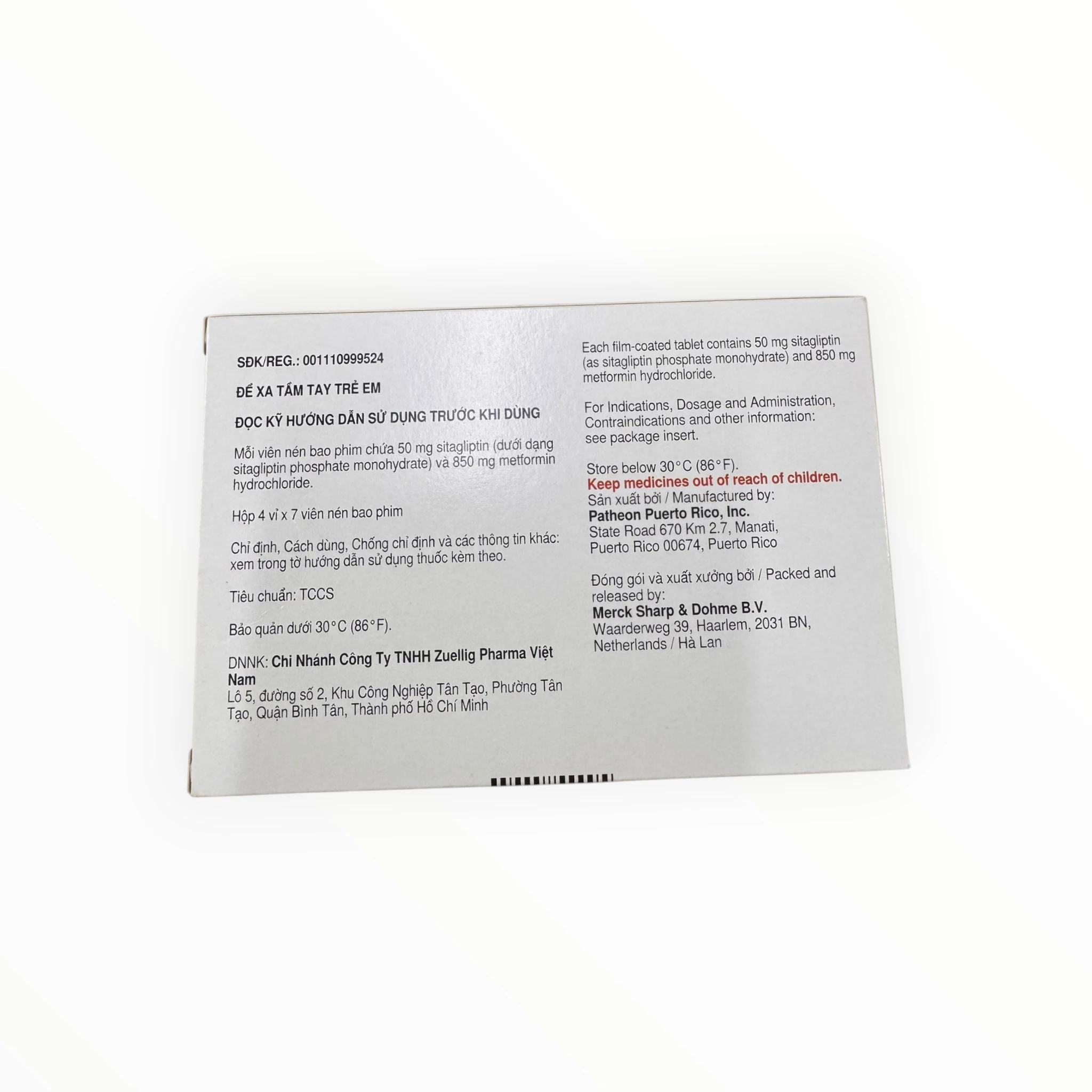 | Mỗi viên nén bao phim chứa (sitagliptin (dưới dạng sitagliptin phosphate monohydrate) và 850 mg metformin hydrochloride) | 50 mg | Hoạt chất |