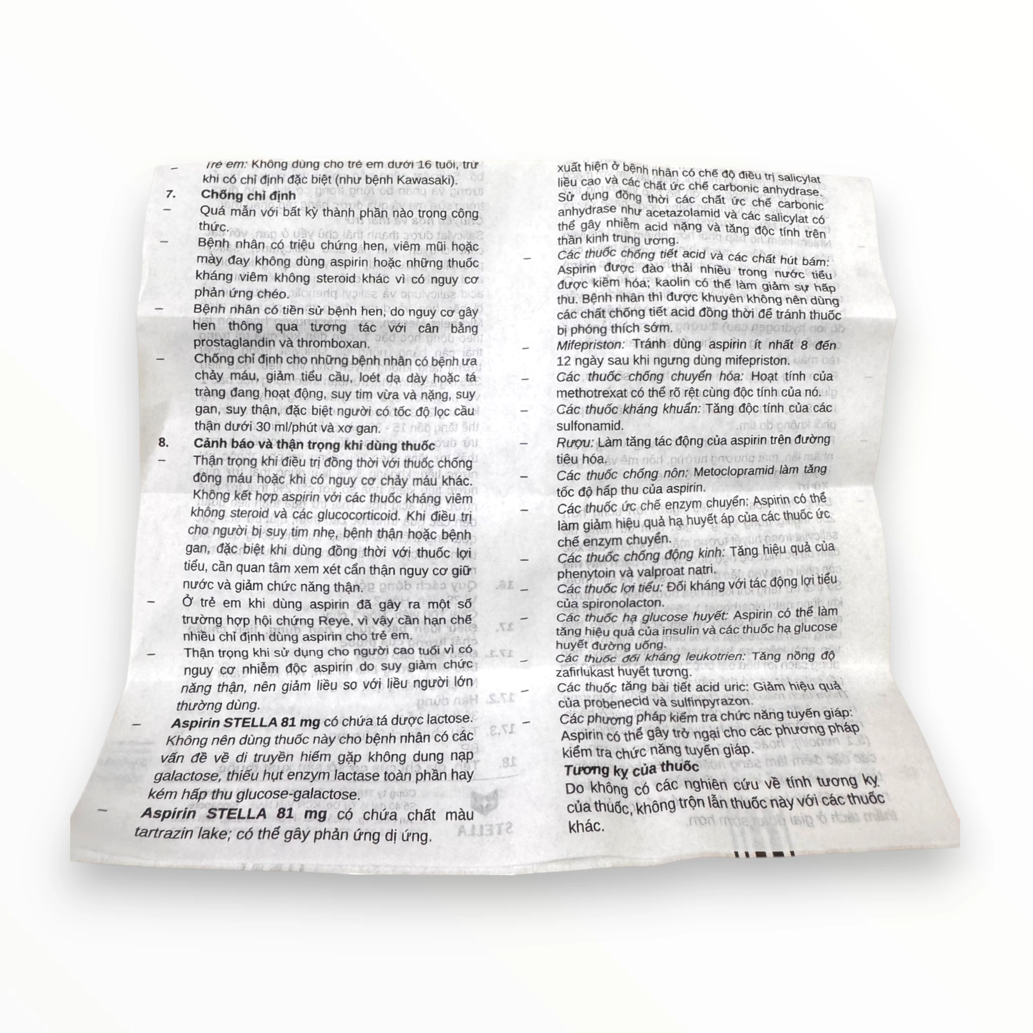- Aspirin STELLA 81 mg có chứa tá dược lactose. Không nên dùng cho bệnh nhân không dung nạp galactose, thiếu enzym lactase, kém hấp thu glucose-galactose.