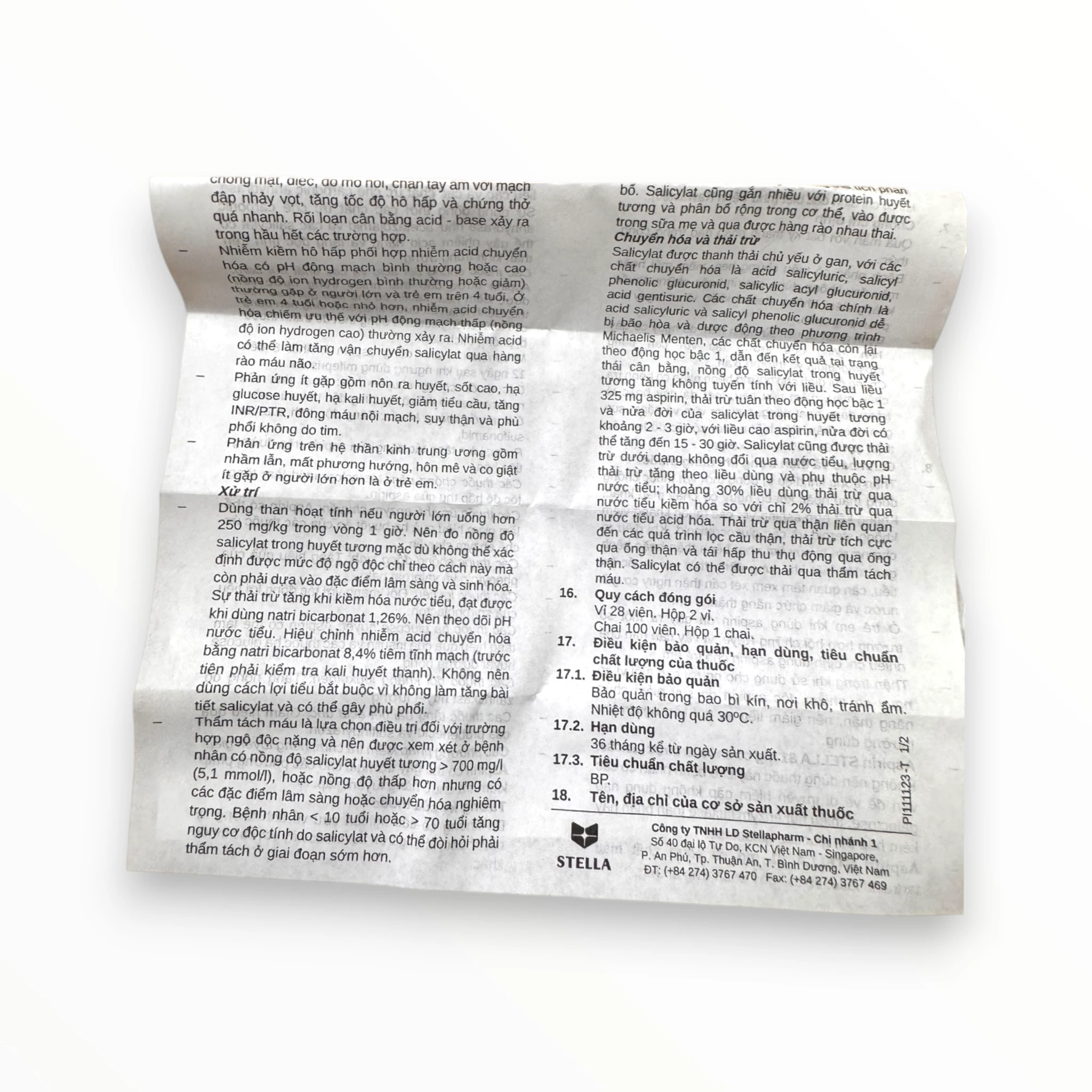 Chuyển hóa và thải trừ: Salicylat được thanh thải chủ yếu ở gan. Nửa đời salicylat khoảng 2-3 giờ sau liều 325 mg, có thể tăng đến 15-30 giờ với liều cao. Khoảng 30% liều dùng thải trừ qua nước tiểu kiềm hóa so với 2% qua nước tiểu acid.