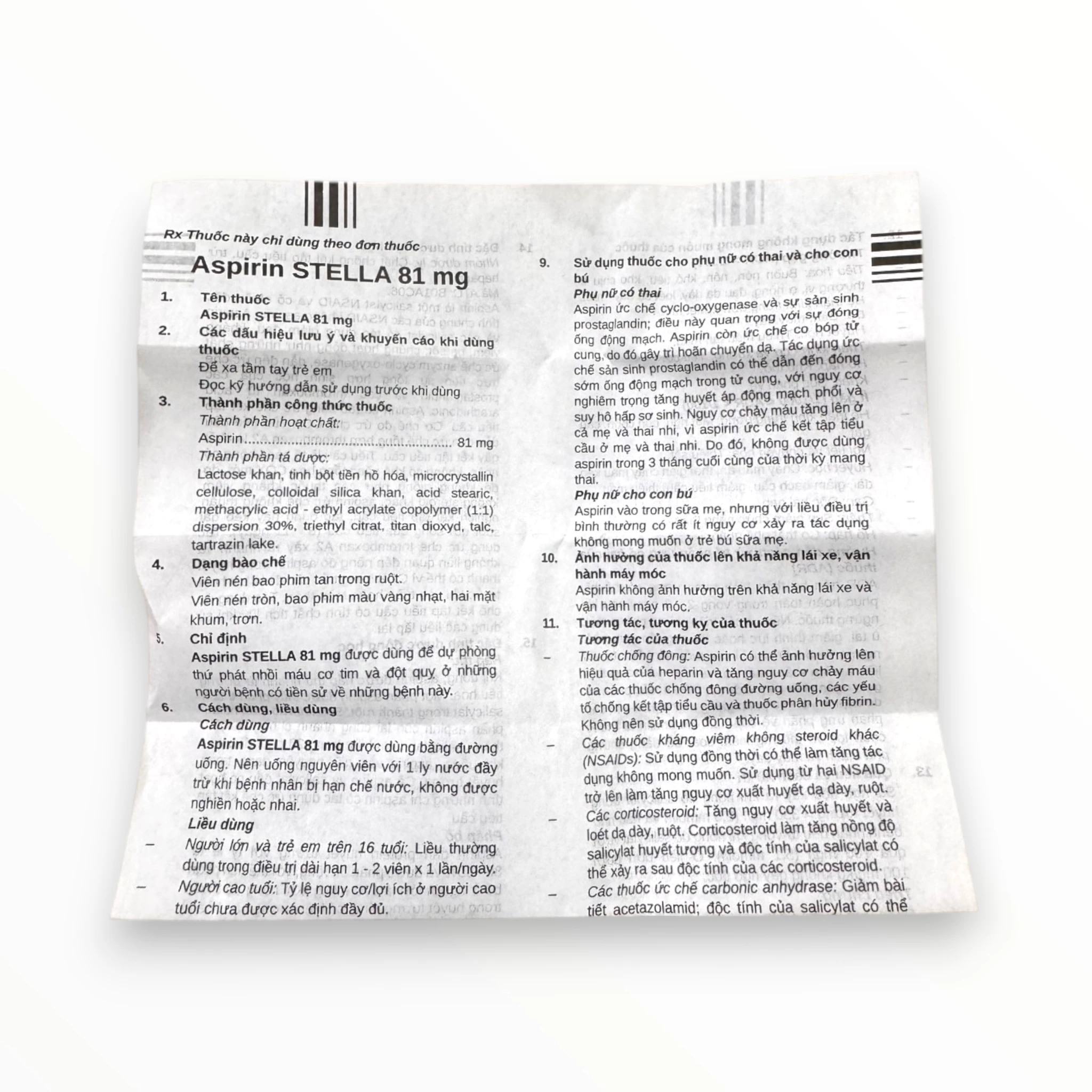 Aspirin STELLA 81 mg được dùng để dự phòng thứ phát nhồi máu cơ tim và đột quỵ ở những người bệnh có tiền sử về những bệnh này.